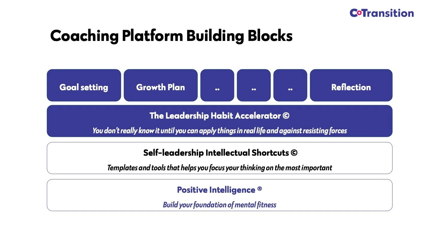 Before working on leadership behaviour, we work on the underlying positive intelligence mental patterns - the saboteurs that run beneath the surface and the positive intelligence that allows a leader to operate from their best self, especially under pressure.